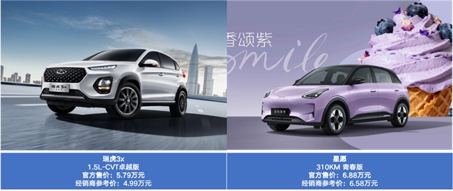 今天,我们就聚焦该领域的两款热门车型:瑞虎3x 1.5L-CVT卓越版(以下简称瑞虎3x卓越版)与吉利星愿 310km青春版(以下简称星愿青春版),看看谁更契合时下年轻人的用车需求,一车搞定“驾驭感、乐趣感与安全感”!