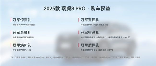 春日焕新正当时,瑞虎8 PRO凭借真7座灵活空间、全面的智能配置、L2级组合驾驶辅助系统,是名副其实的“家庭出行最佳拍档”。而3月的购车政策也十分友好,如果近期有购车需求,趁着开春焕新礼活动“抄底”瑞虎8 PRO,性价比会更高。
