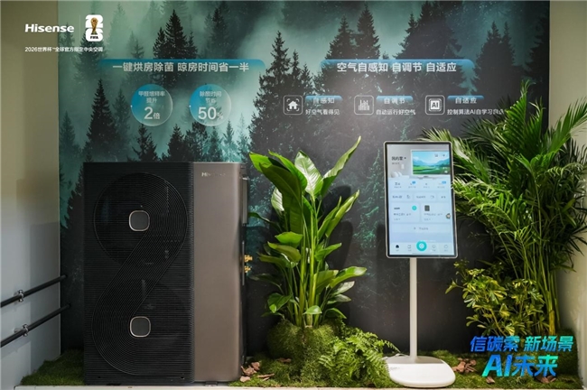今年3月,2026中国家电及消费电子博览会(AWE2026)上,作为全屋智慧空气领域的引领者,海信中央空调以“信碳索 新场景 AI未来”为主题,携2026世界杯定制产品——Ai家II PRO,以及ThinkAir2.0全屋健康智慧生态系统、全域高效热泵AI冷暖舒适系统、全场景绿色新能源解决方案等“黑科技”重磅亮相,向全球展现了中国品牌在智慧空气领域的创新成果。